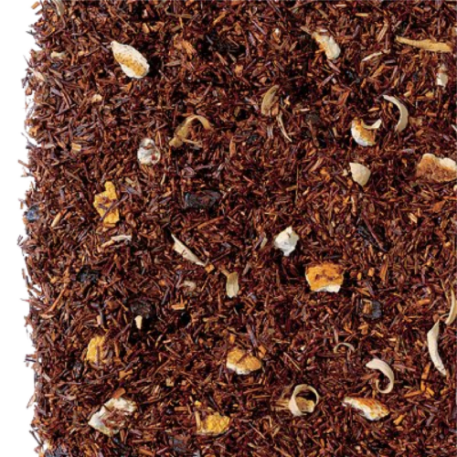 Rooibos Gingerbread/Orange: Deze thee verleidt u met haar smaak van buitengewoon intens, verse kruidkoek en zoete sinaasappelen. Exotische ingrediënten zoals peper en koriander maken de thee speciaal. Ingrediënten: rooibos thee, geschaafde stukjes amandel, pistachenoten, sinaasappelschil, koriander, natuurlijke smaakstoffen en roze peper.