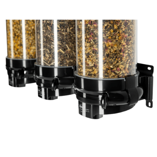 Deze professionele theedispenser voor aan de muur met 3 theedispensers met 1,5Liter inhoud is geschikt voor droge voeding zoals bijvoorbeeld losse thee. Het gepatenteerde “Multi -X” mechanisme heeft 5 verschillende portieniveaus van 10cc, 15cc, 20cc, 30cc en 35cc die verstelbaar zijn zodat jij elke keer de juiste hoeveelheid van kiezen voor jouw product.